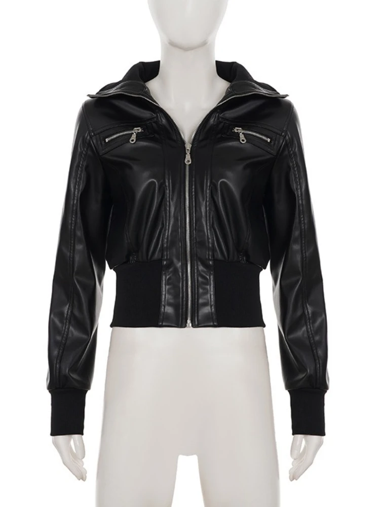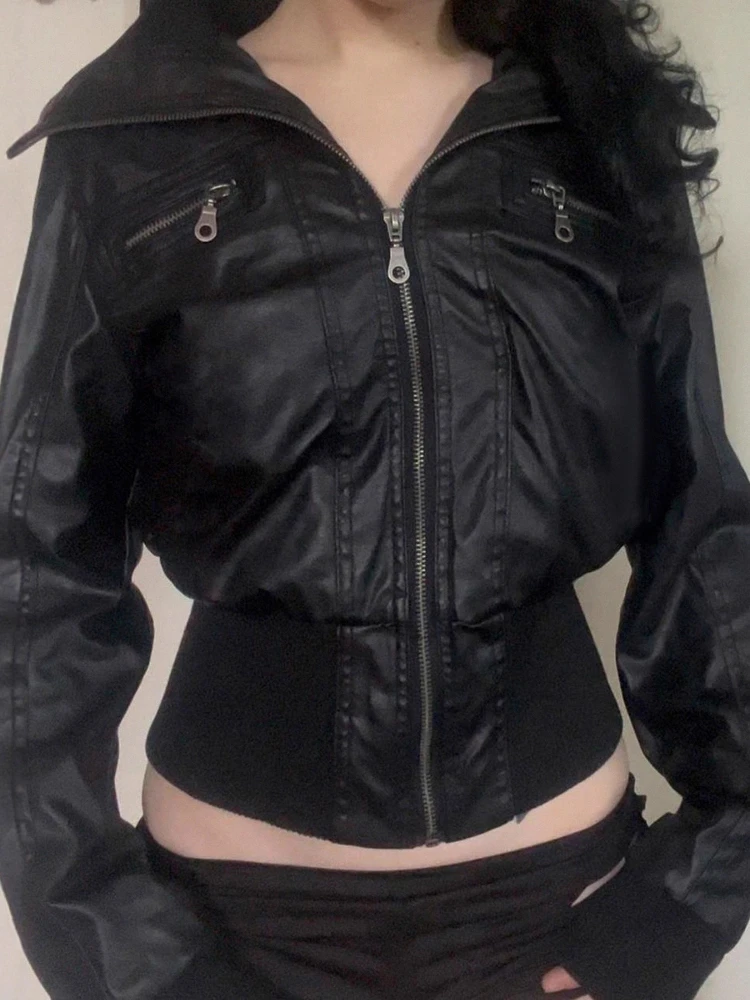 AltGoth Amercian Vintage Pu kožená bunda pro ženy Streetwear Harajuku Grunge Emo Alternativní Grunge Zip Casual Kabáty Dámské