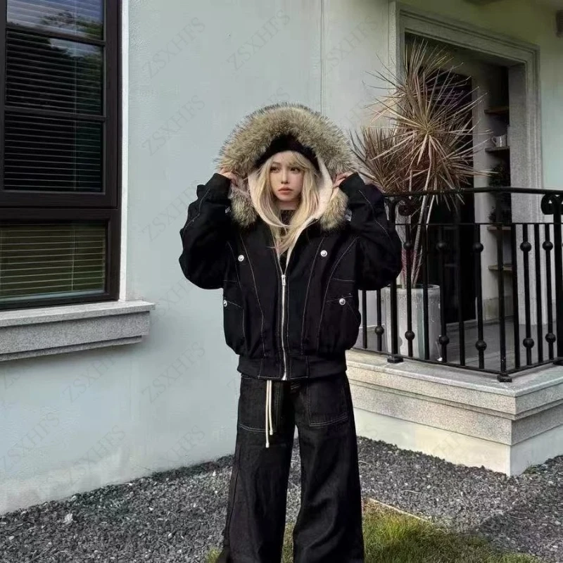 Zimní dámský top s kapucí a kožešinovou patchworkovou výšivkou z roku 2000 High Street