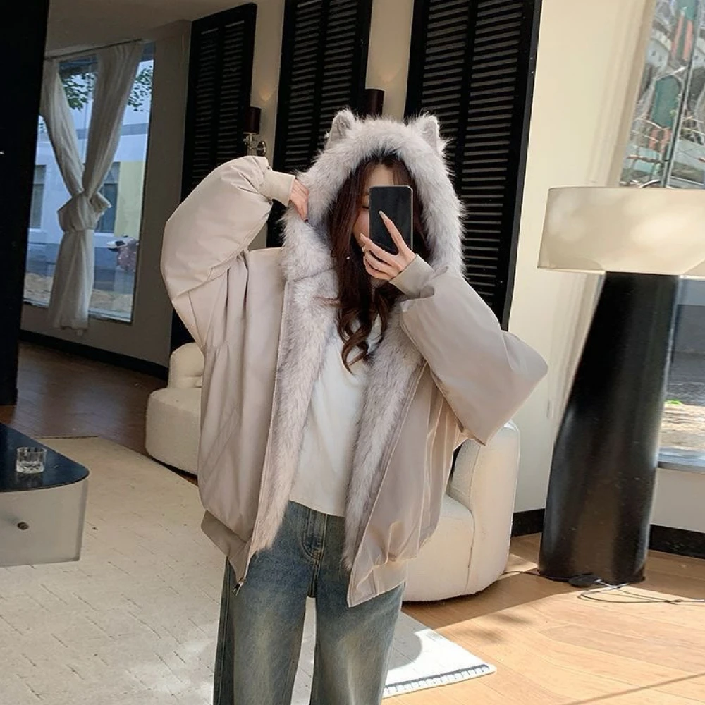 Super, měkké. Kožíšek vypadá přirozeně. Při zkoušce doma mi bylo horko. Velikost M se ukázala být pro mě příliš velká; upravím knoflíky a přidám háček nahoře u límce.