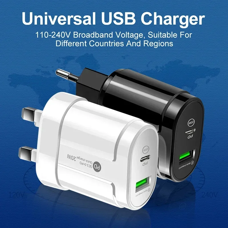 1ks 20W nabíječka s rychlonabíjením 5V 2A USB Type-C nabíječka se dvěma porty do zásuvky, barva Macaron, zástrčka EU/US pro iPhone a Huawei