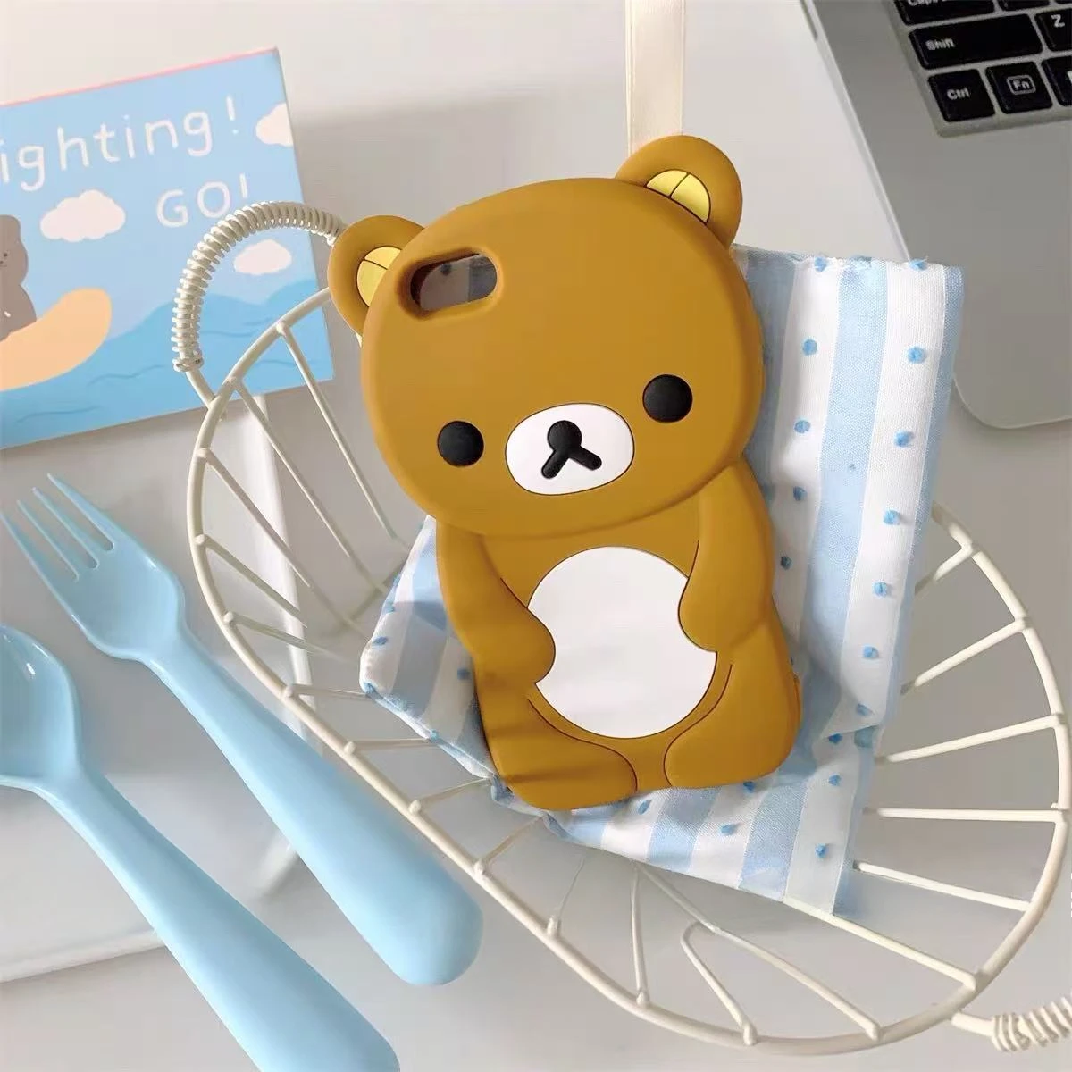 3D kreslený medvěd Rilakkuma pouzdro na telefon pro iPhone 16 15 14 Plus 13 12 Pro Max 11 X Xs Max 7 8 SE 6s 5s Měkký silikonový kryt - Novinky