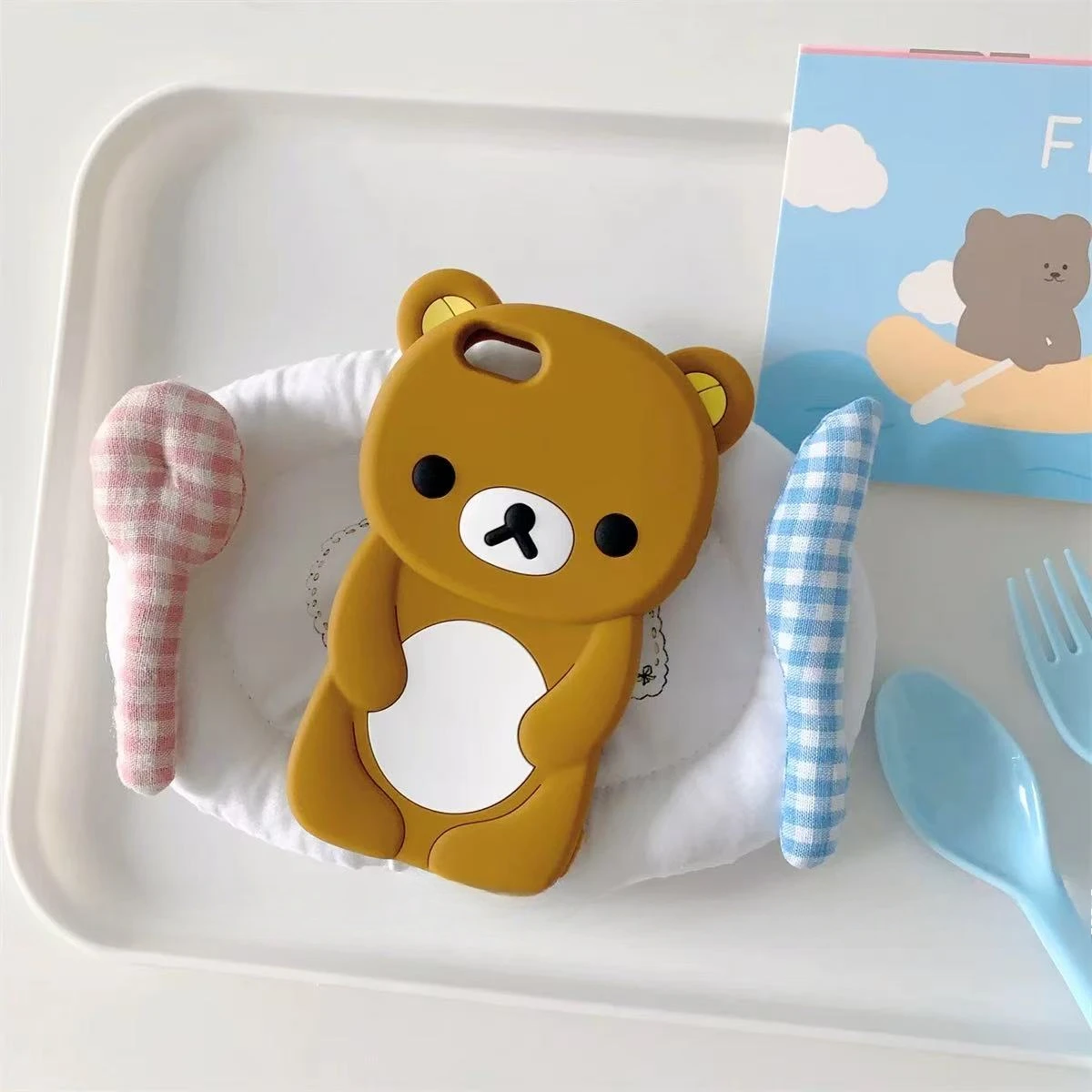 3D kreslený medvěd Rilakkuma pouzdro na telefon pro iPhone 16 15 14 Plus 13 12 Pro Max 11 X Xs Max 7 8 SE 6s 5s Měkký silikonový kryt
