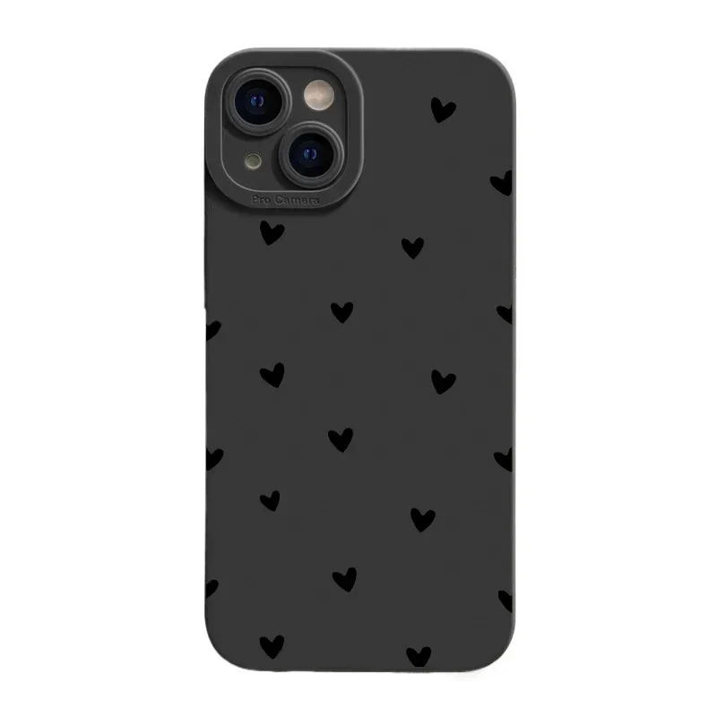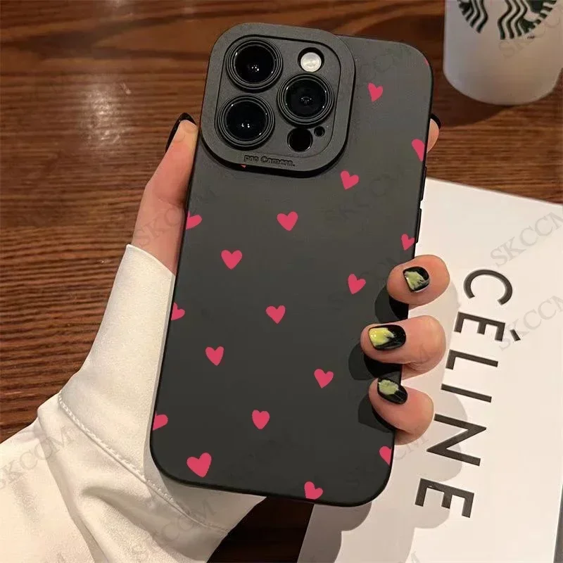 Černý silikonový kryt s motivem srdce pro iPhone 17 16 15 14 11 Pro Max 12 13 Mini XS XR X 8 7 Plus nárazuvzdorný měkký silikonový nárazník