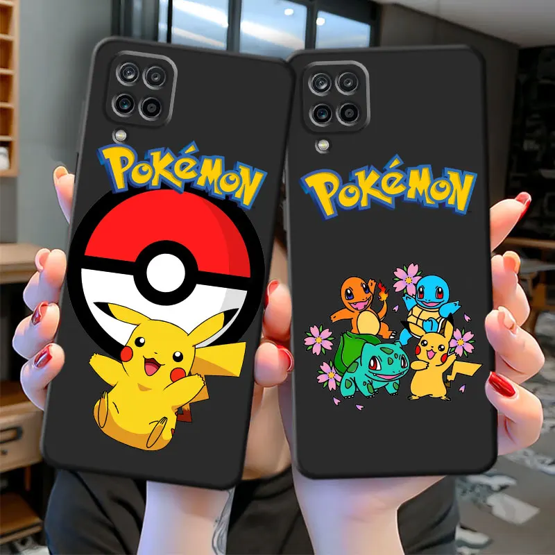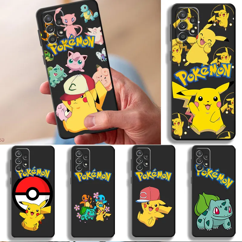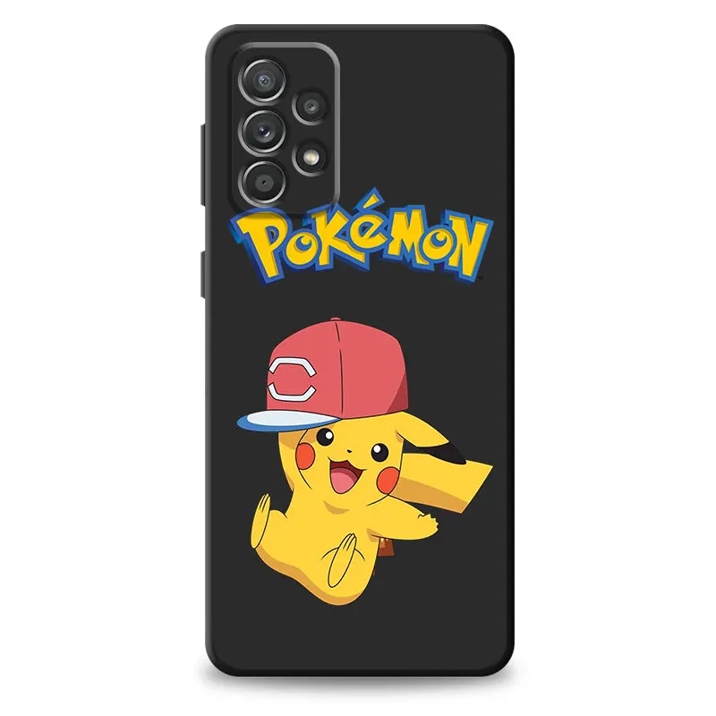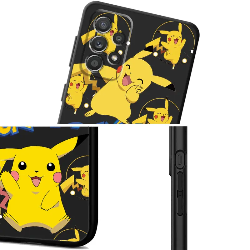 Černý TPU kryt s motivem Pokémona Pikachu pro Samsung Galaxy A12 A22 A32 A51 4G A72 A21s A52 5G A11 A13 A71 A33 A52s A42 A23 A91 taška