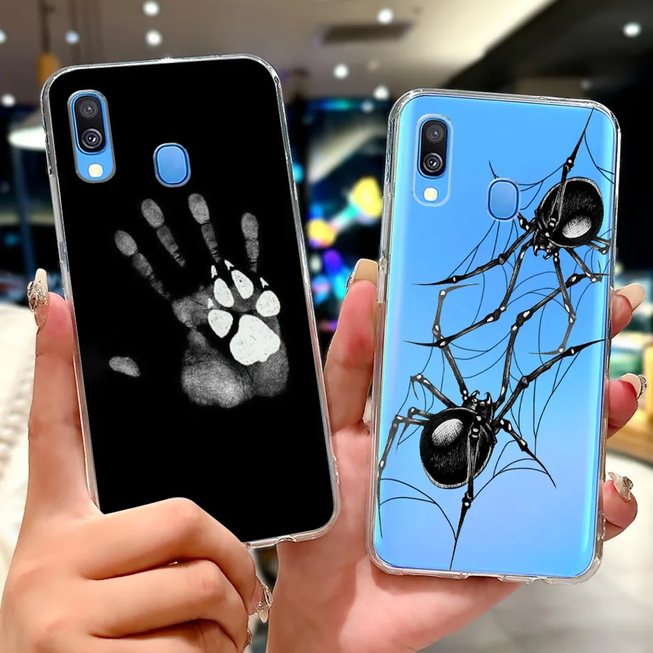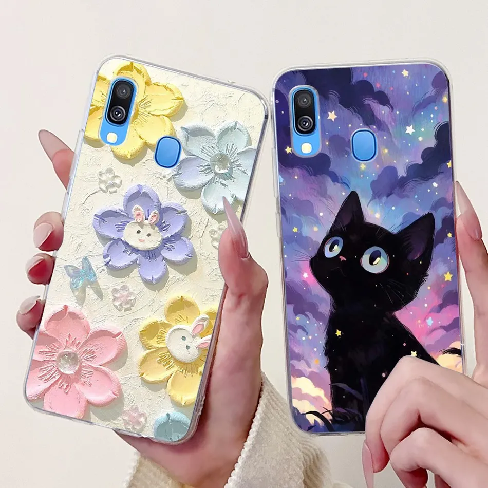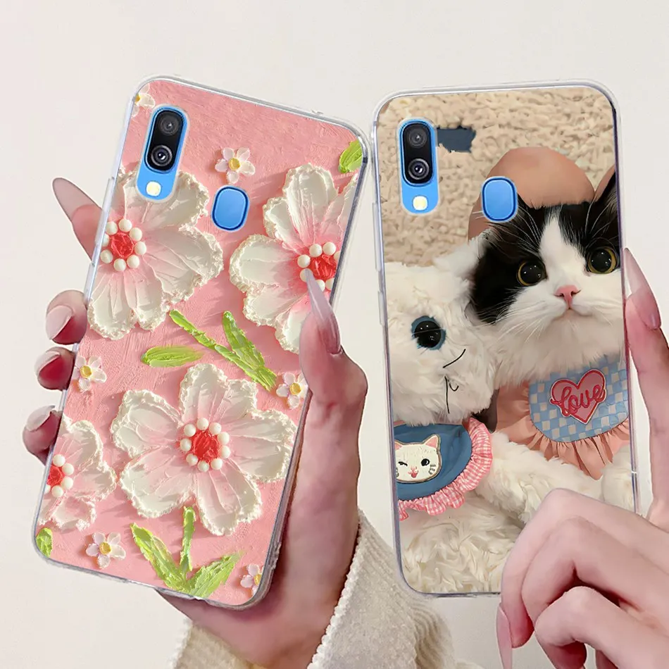 Elegantní silikonový kryt s květinovým potiskem a kočkou pro Samsung Galaxy A40 A40S, měkký, TPU, s motivem kočky, pro Samsung A40 A 40 40S.