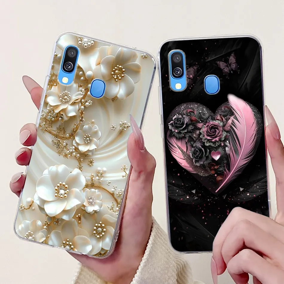Elegantní silikonový kryt s květinovým potiskem a kočkou pro Samsung Galaxy A40 A40S, měkký, TPU, s motivem kočky, pro Samsung A40 A 40 40S. - Novinky