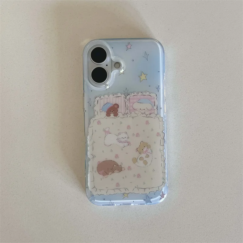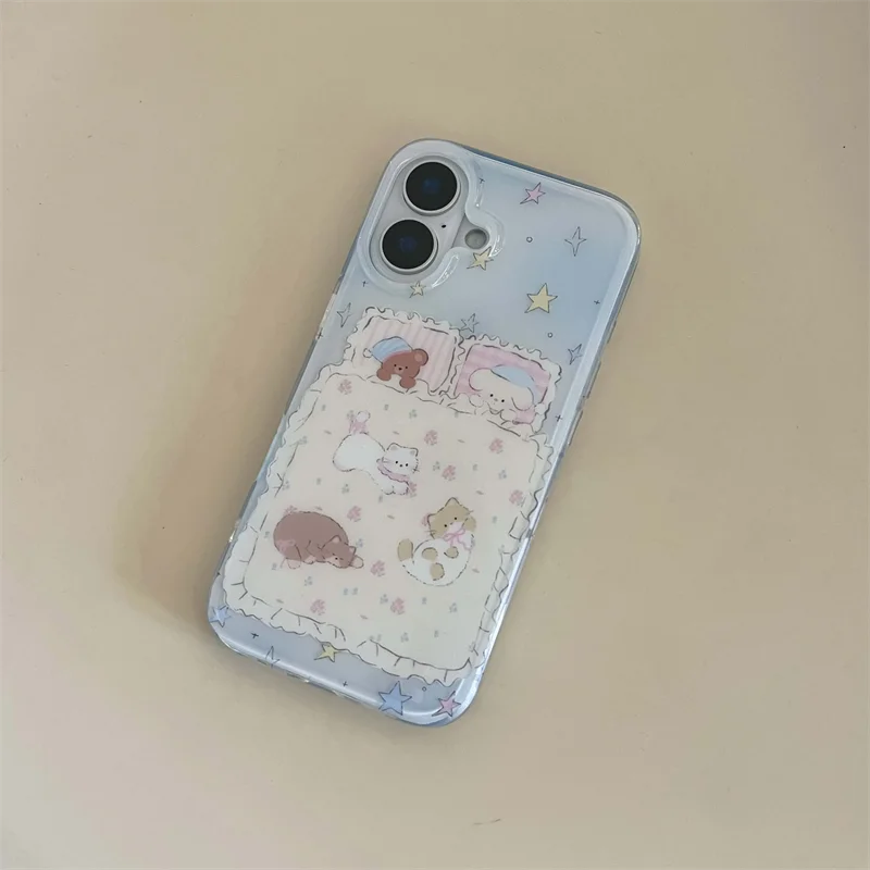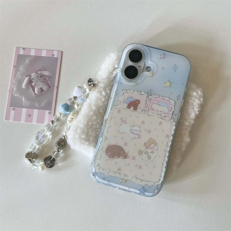 Korejská kreslená štěňata a koťata s řetízkem na zápěstí pro iPhone 17 16 15 14 11 12 13 Pro Max 16E 17Air 7 8 Plus kryt