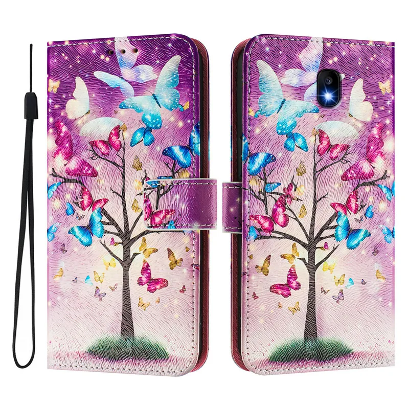 Kožené pouzdro na telefon J330 pro Samsung Galaxy J3 J5 J7 Pro 2017 EU J6 J4 Plus 2018 Coque Flipové pouzdro Peněženka Magnetické malované pouzdra