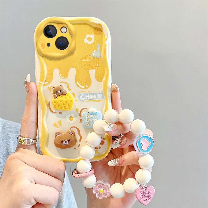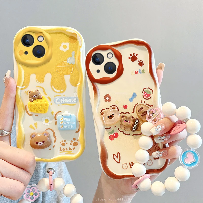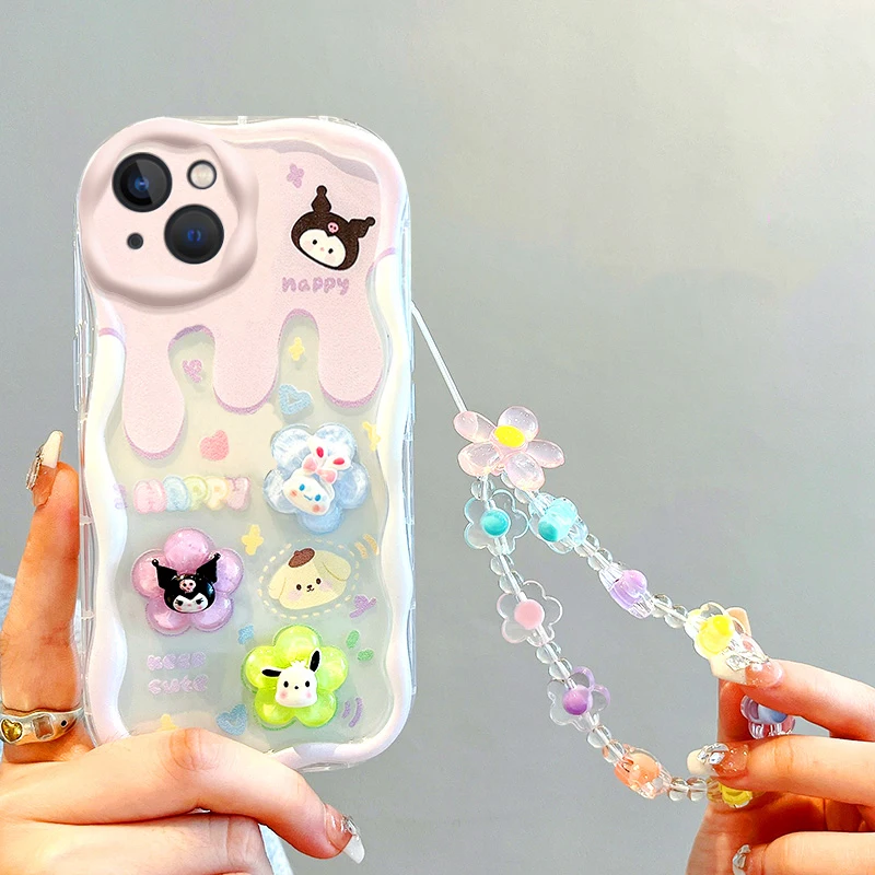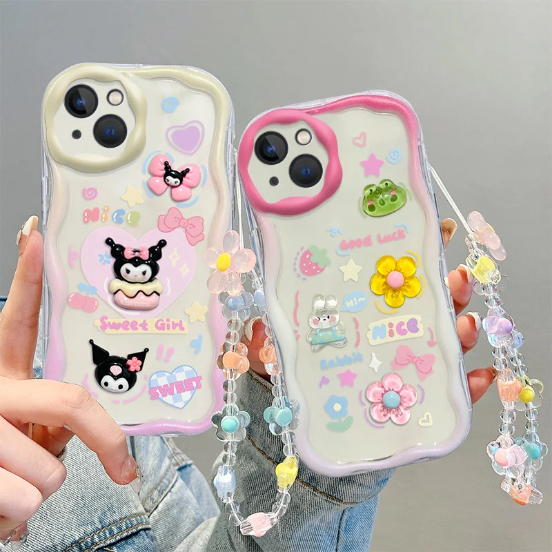 Krásný 3D Sanrio králičí řetízkový kryt na telefon pro iPhone 14 13 12 11 Pro Max X XR XS 8 7 6 6S Plus SE 2020 měkký silikonový zadní kryt