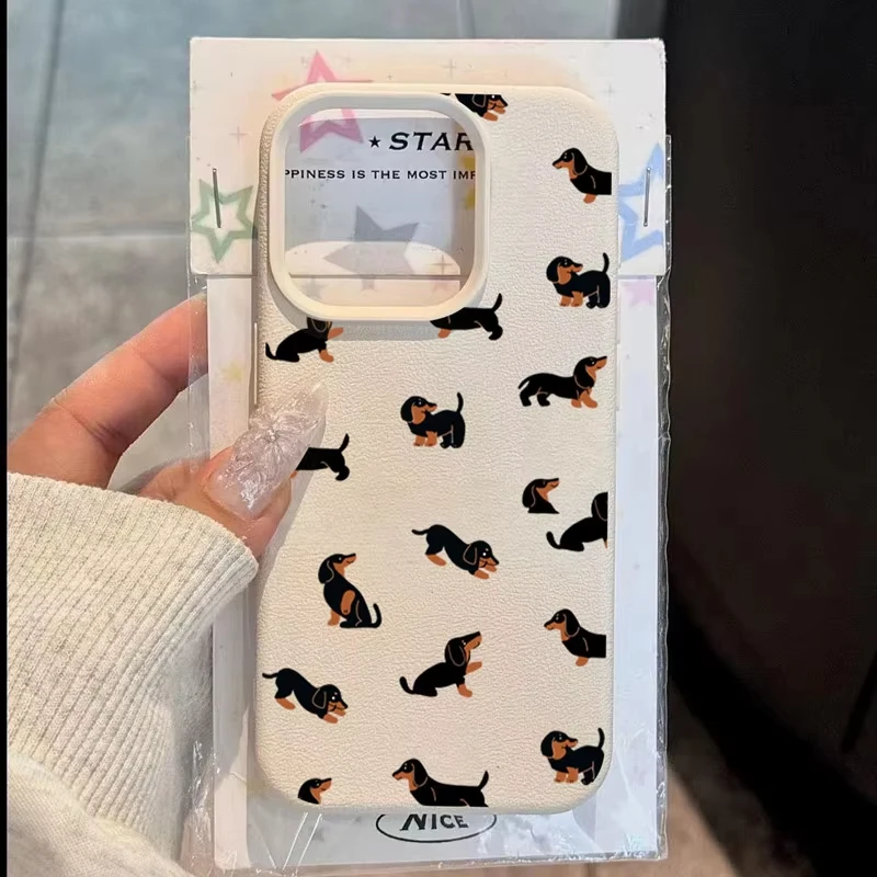 Kreativní minimalistický bílý matný TPU kryt s motivem jezevčíka pro iPhone 17 Air 16 15 14 13 12 11 Pro Max 17Pro X XS XR 16E Cover Funda