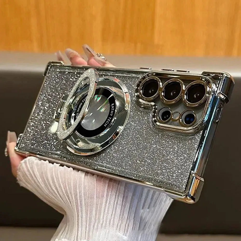Luxusní magnetický pokovený stojánek nárazuvzdorný třpytivý kryt pro Samsung Galaxy S25 Edge S24 Ultra S23 S22 Plus S21 S20 FE průhledný kryt - Novinky