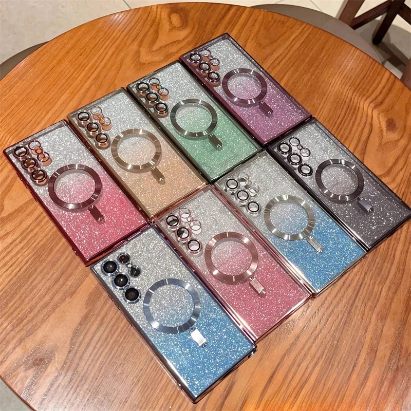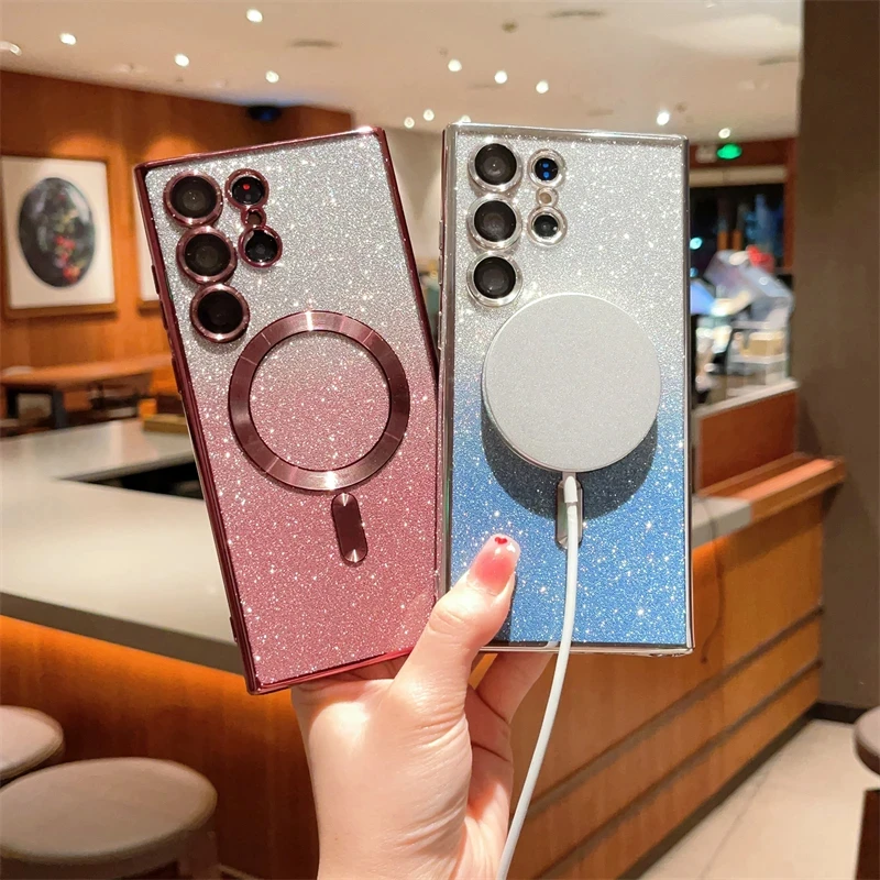 Luxusní třpytivé magnetické pouzdro pro ženy s magnetickým uzávěrem pro MagSafe pro Samsung Galaxy S24 S23 S22 S25 Ultra Plus, příslušenství, bezdrátové nabíjení - Novinky