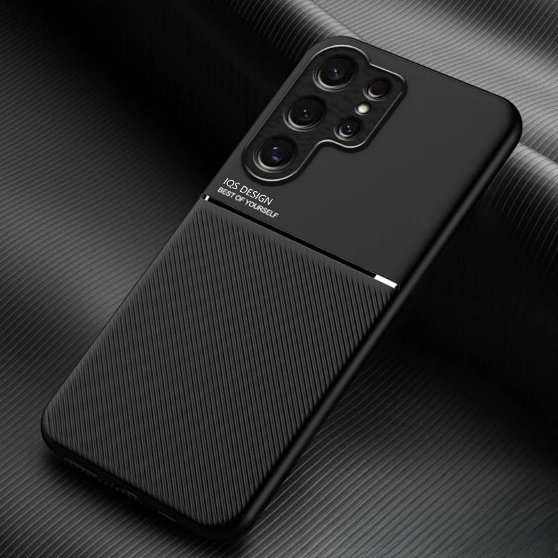 Magnetický držák do auta, kožené pouzdro na telefon s destičkou pro Samsung Galaxy S25 S22 S23 S24 Ultra Plus Edge S21 S20 FE 5G, měkký zadní kryt