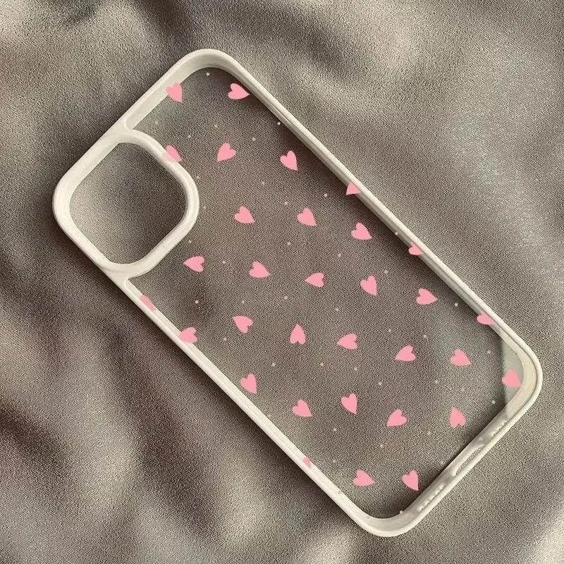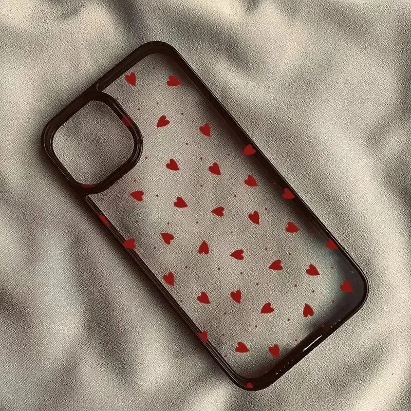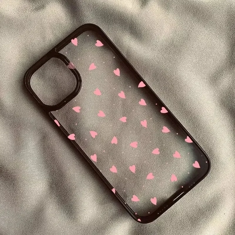 Módní růžový kryt s motivem srdce pro iPhone 16 15 14 Pro Max 13 12 11 XR XS MAX X 7 8 Plus SE2 Roztomilý černý průhledný kryt