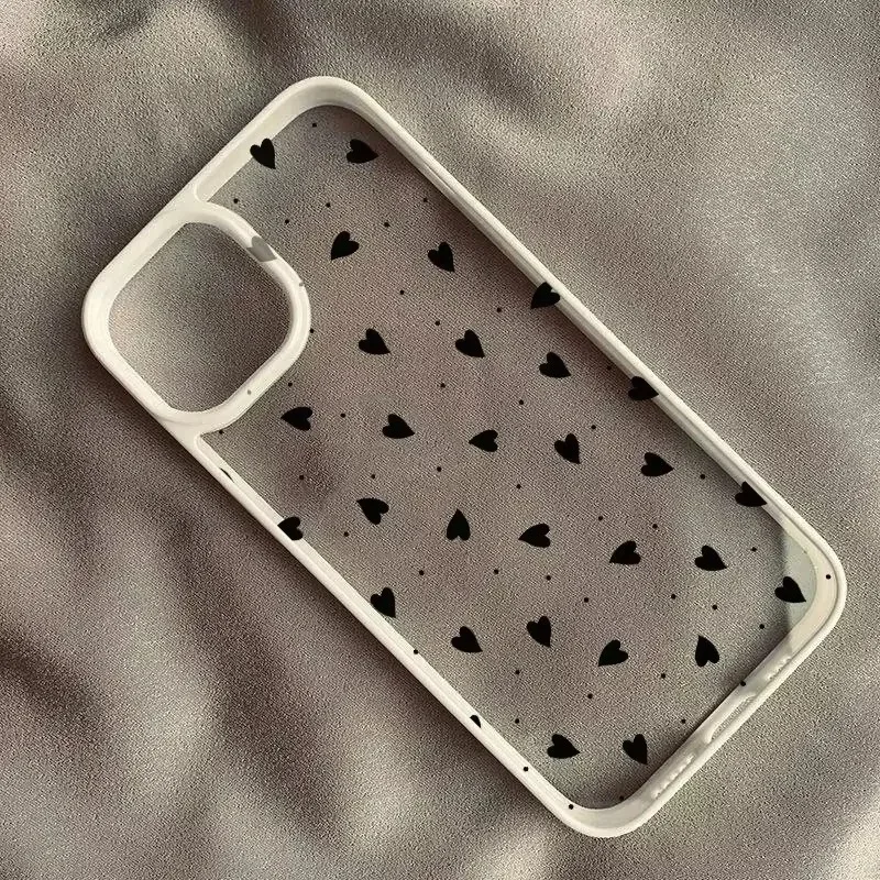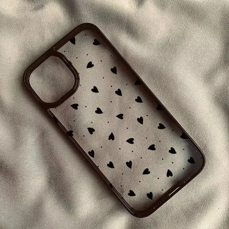 Módní růžový kryt s motivem srdce pro iPhone 16 15 14 Pro Max 13 12 11 XR XS MAX X 7 8 Plus SE2 Roztomilý černý průhledný kryt - Novinky