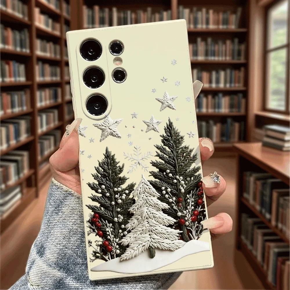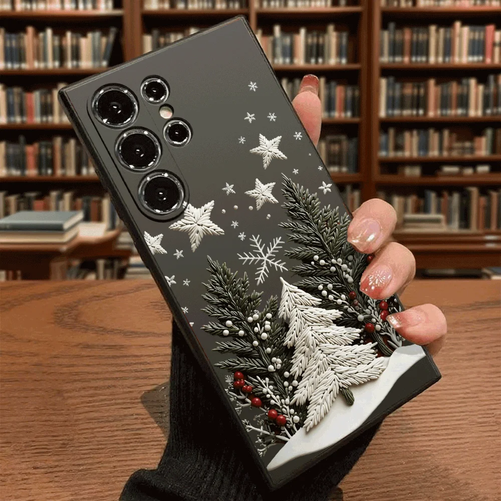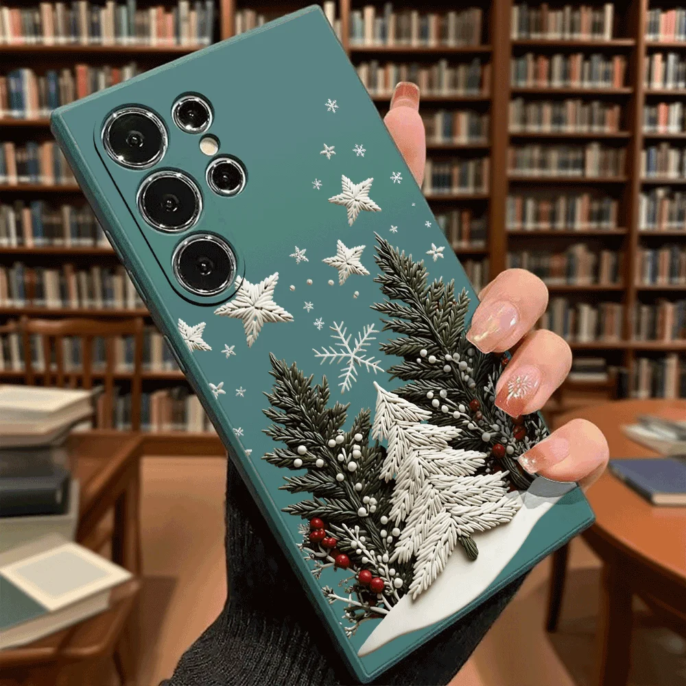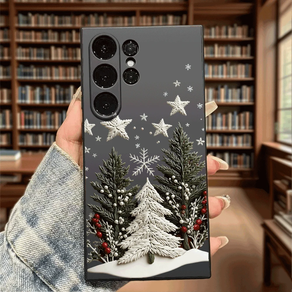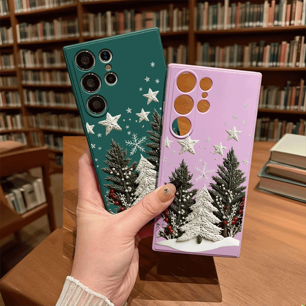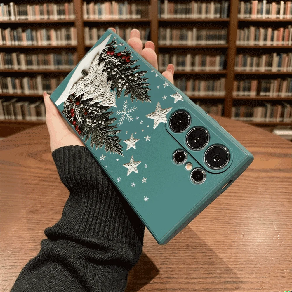 Pouzdro na telefon s vánočními stromky, sněhovými vločkami a hvězdami pro Samsung Galaxy S25 S24 Ultra S23 S22 S21 S20 FE Plus Soft TPU ochranný kryt - Novinky