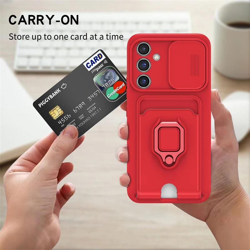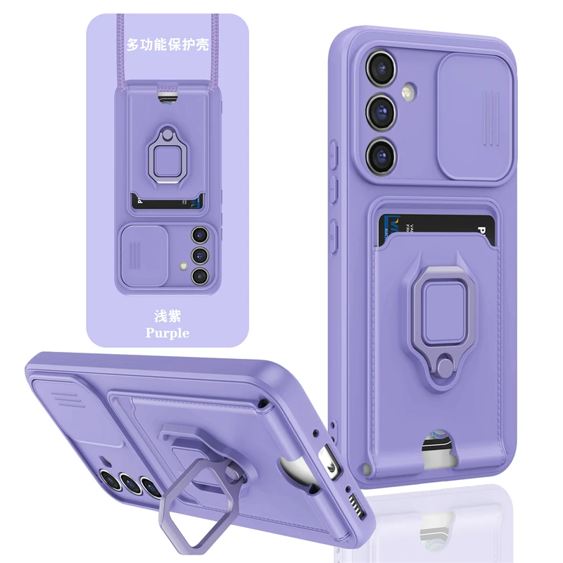 Pouzdro na telefon Samsung Galaxy A16 A55 A35 A25 A15 A54 A34 A24 A14 A73 A53 A33 A23 A13 5G s kapsou na kartu, ochranným krytem, držákem na telefon s kroužkem - Novinky