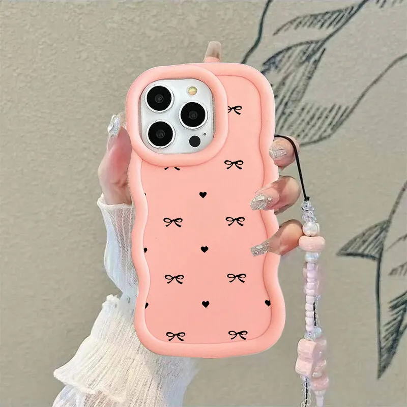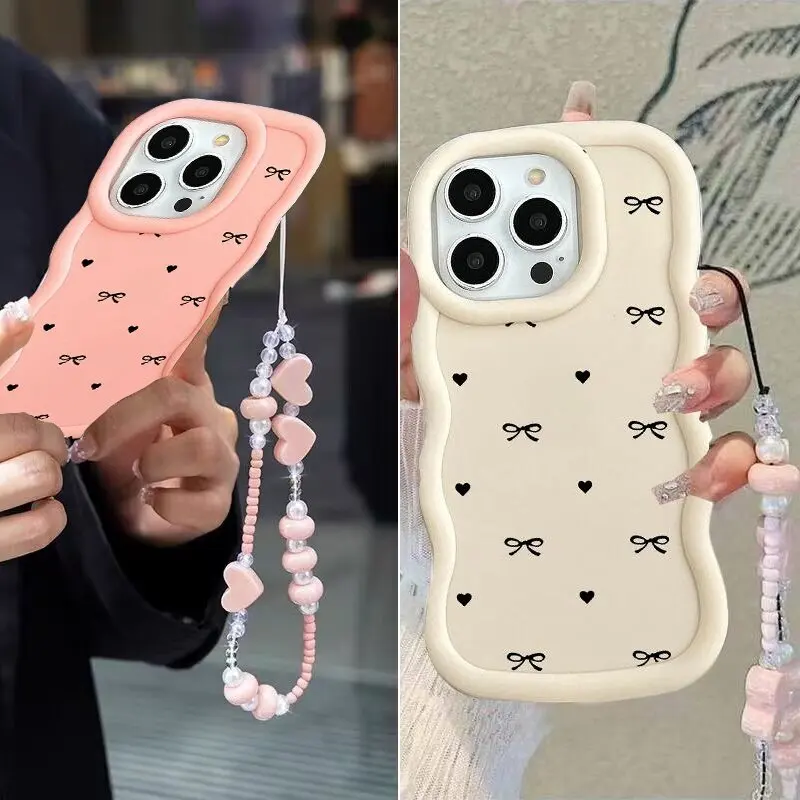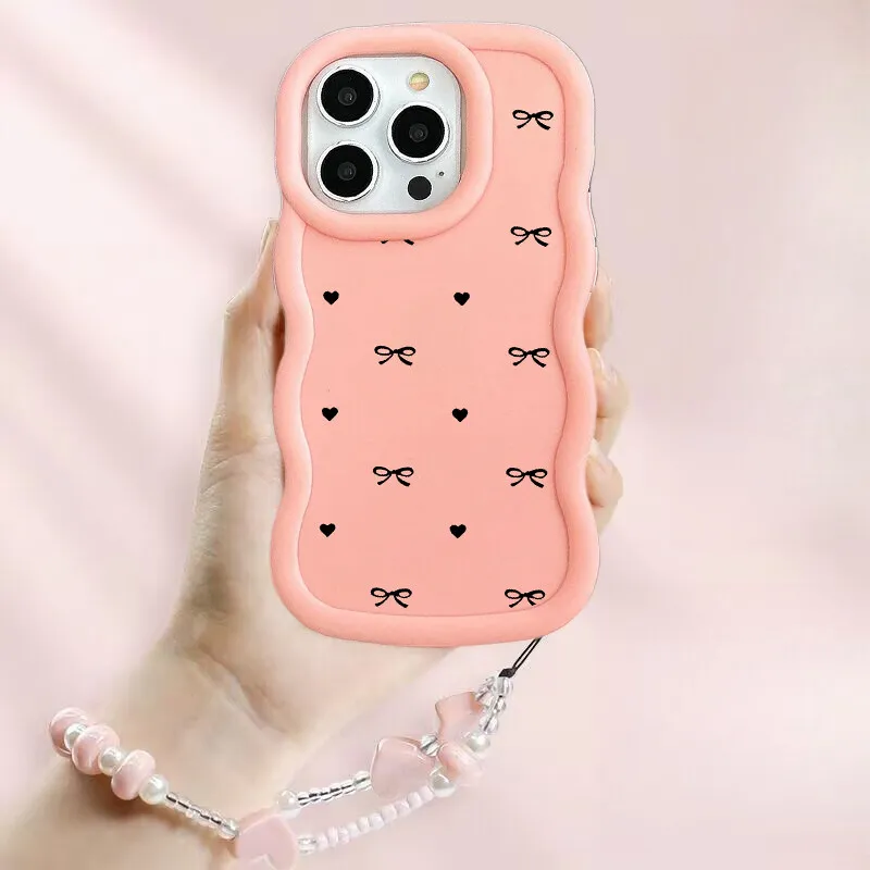 Pouzdro s mašlí a srdcem pro Samsung S23 S24 S25 S22 Plus Utlra FE A55 A16 A54 A34 A35 A73 A06 A32 A23 A14 s řetízkem na krk