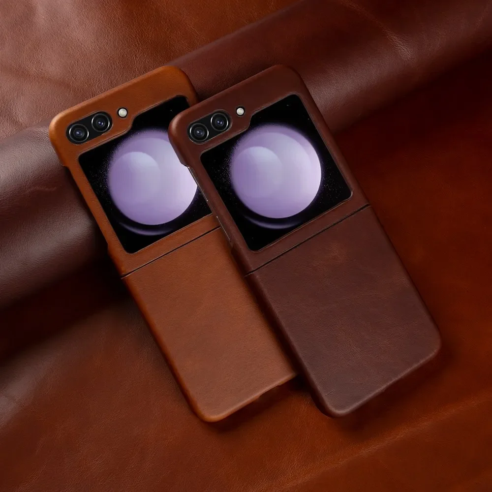 Prémiové pouzdro z pravé kůže pro Samsung Galaxy Z Flip5 Cover Z FLip4 flip3 Vintage olejově voskovaný vzor Ochranné pouzdro pro telefon - Novinky