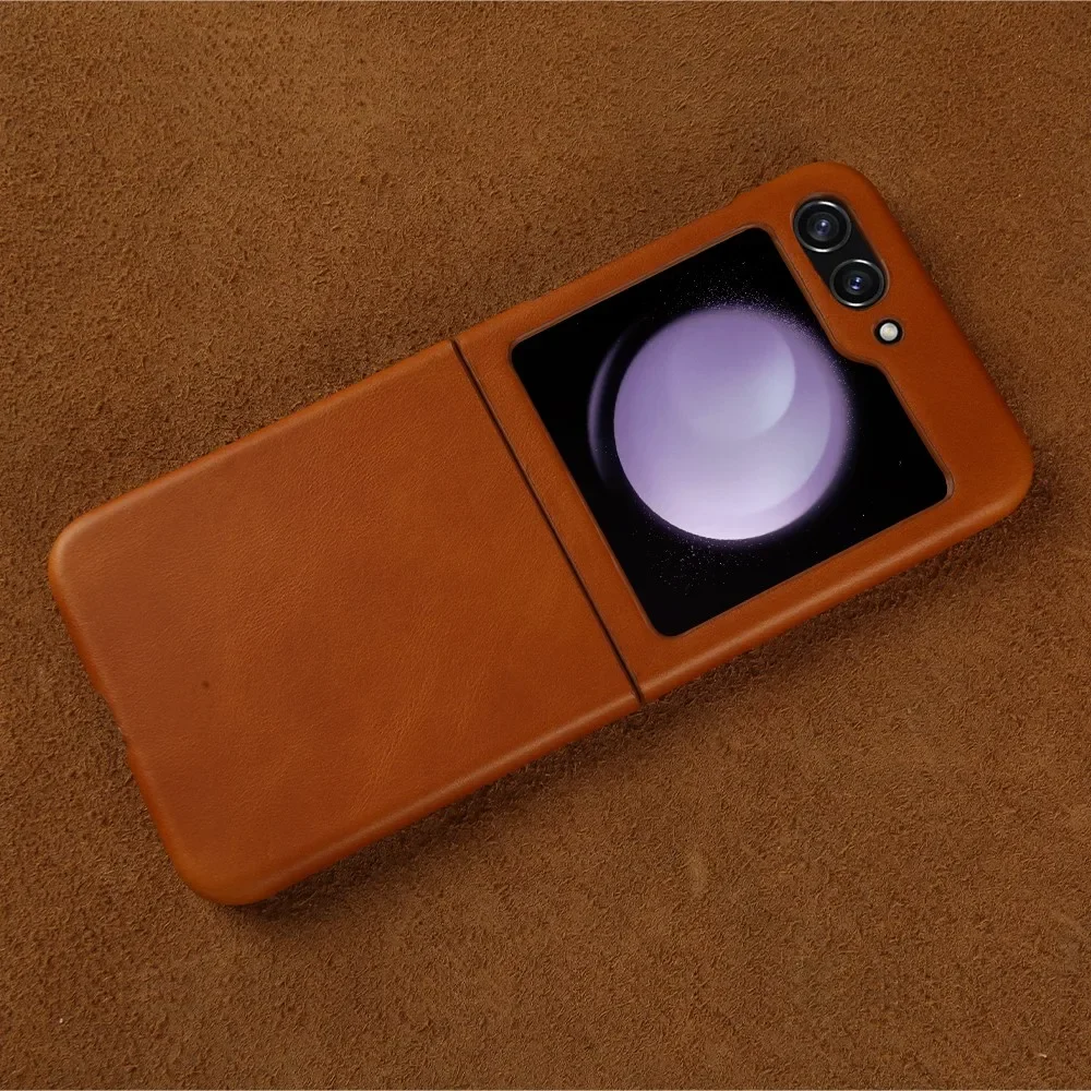 Prémiové pouzdro z pravé kůže pro Samsung Galaxy Z Flip5 Cover Z FLip4 flip3 Vintage olejově voskovaný vzor Ochranné pouzdro pro telefon