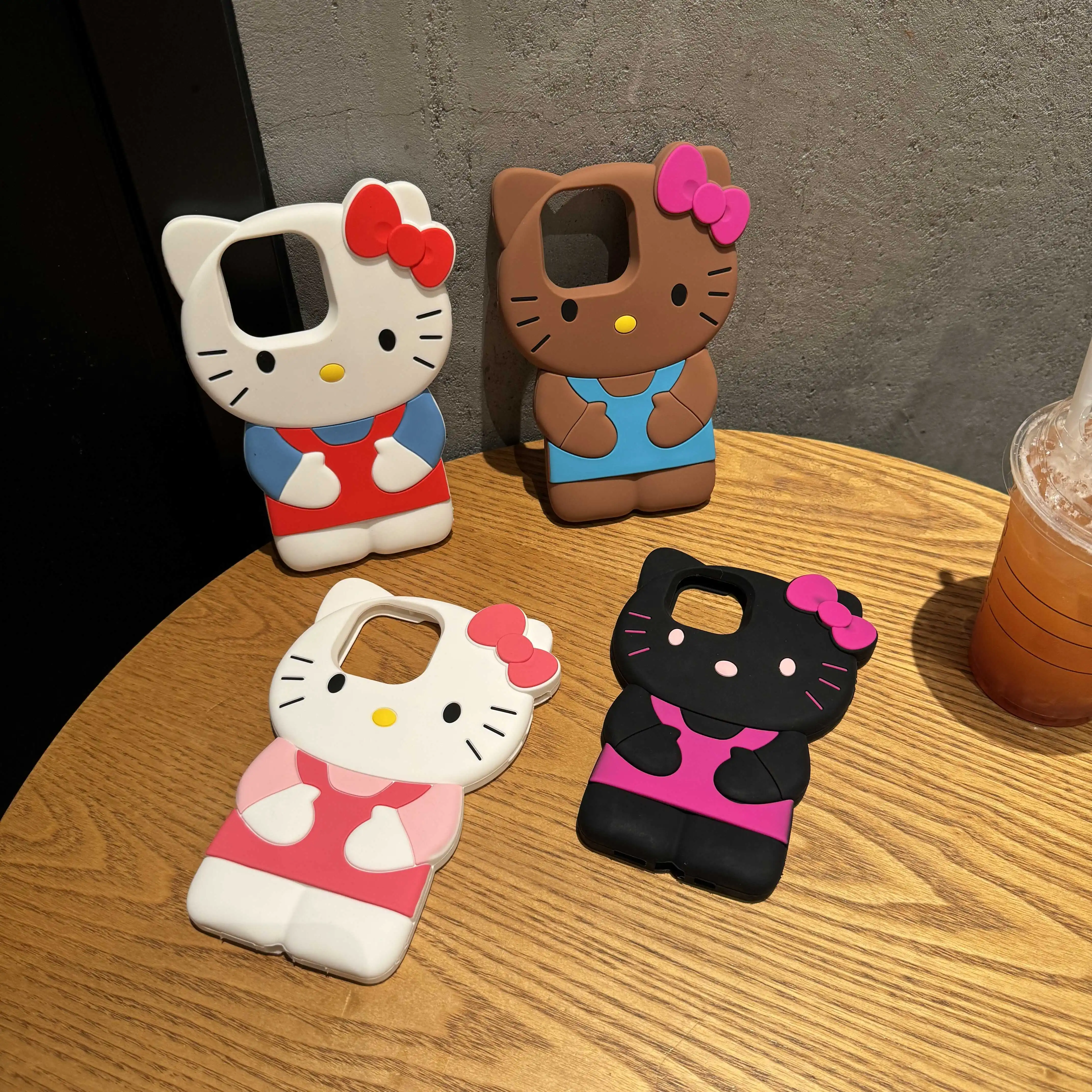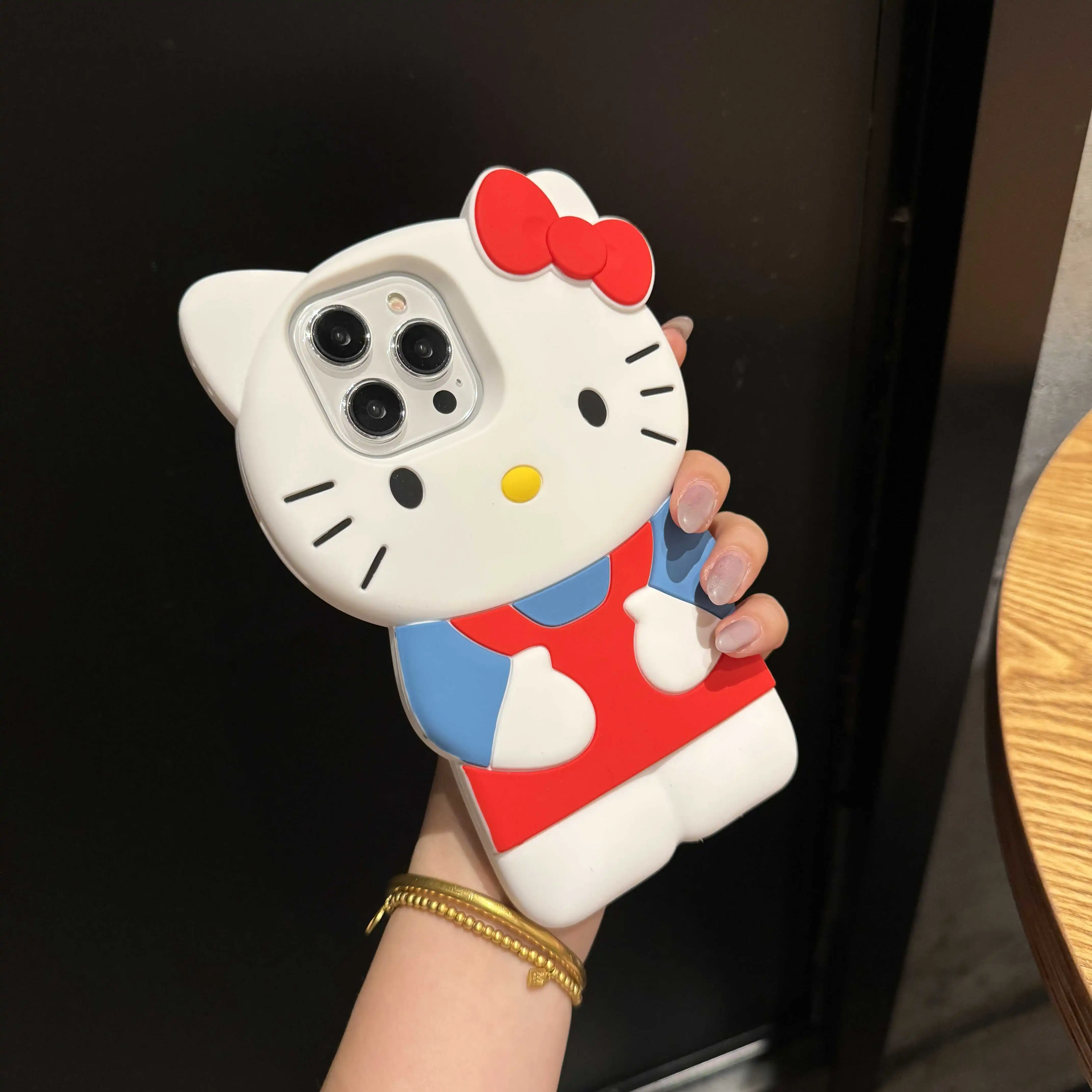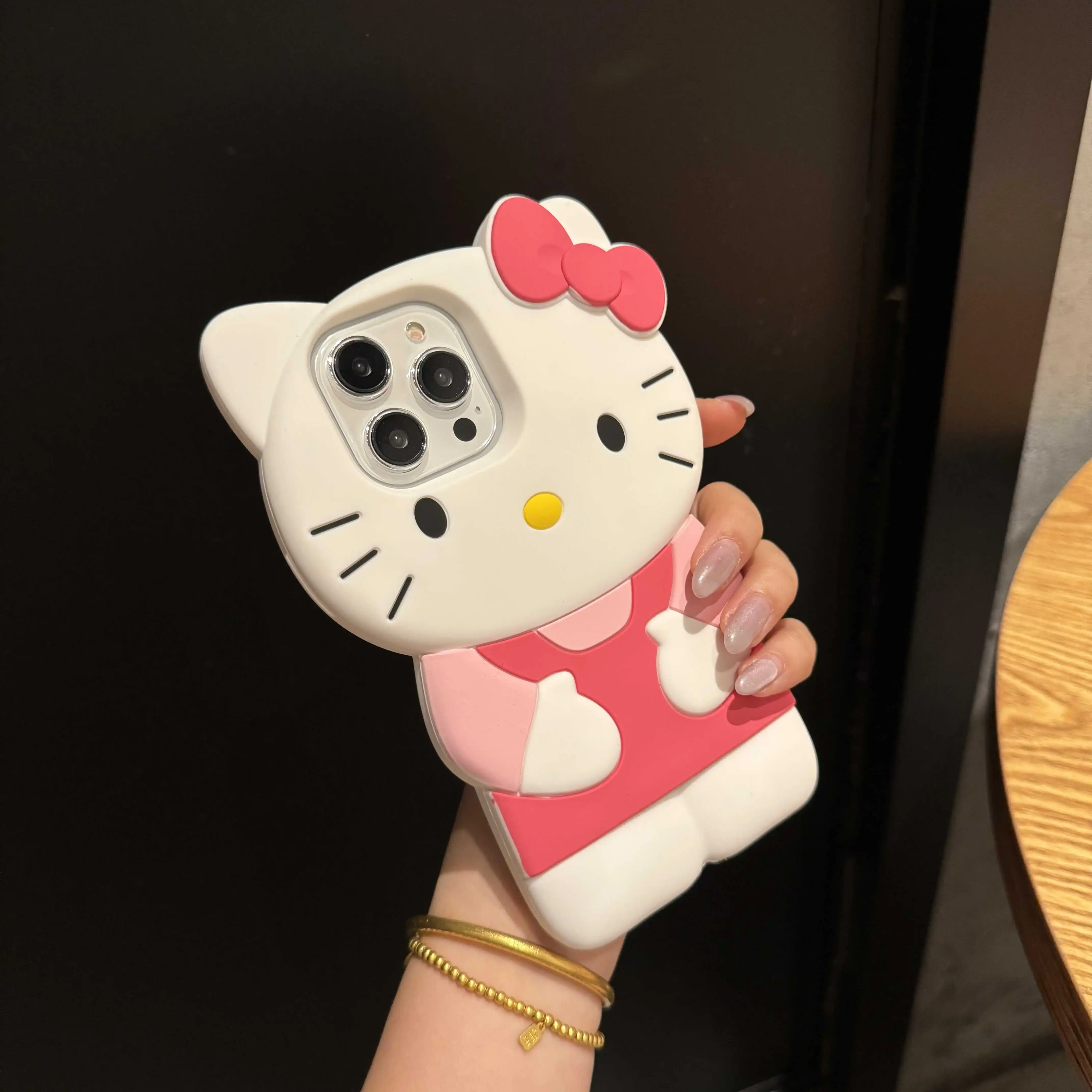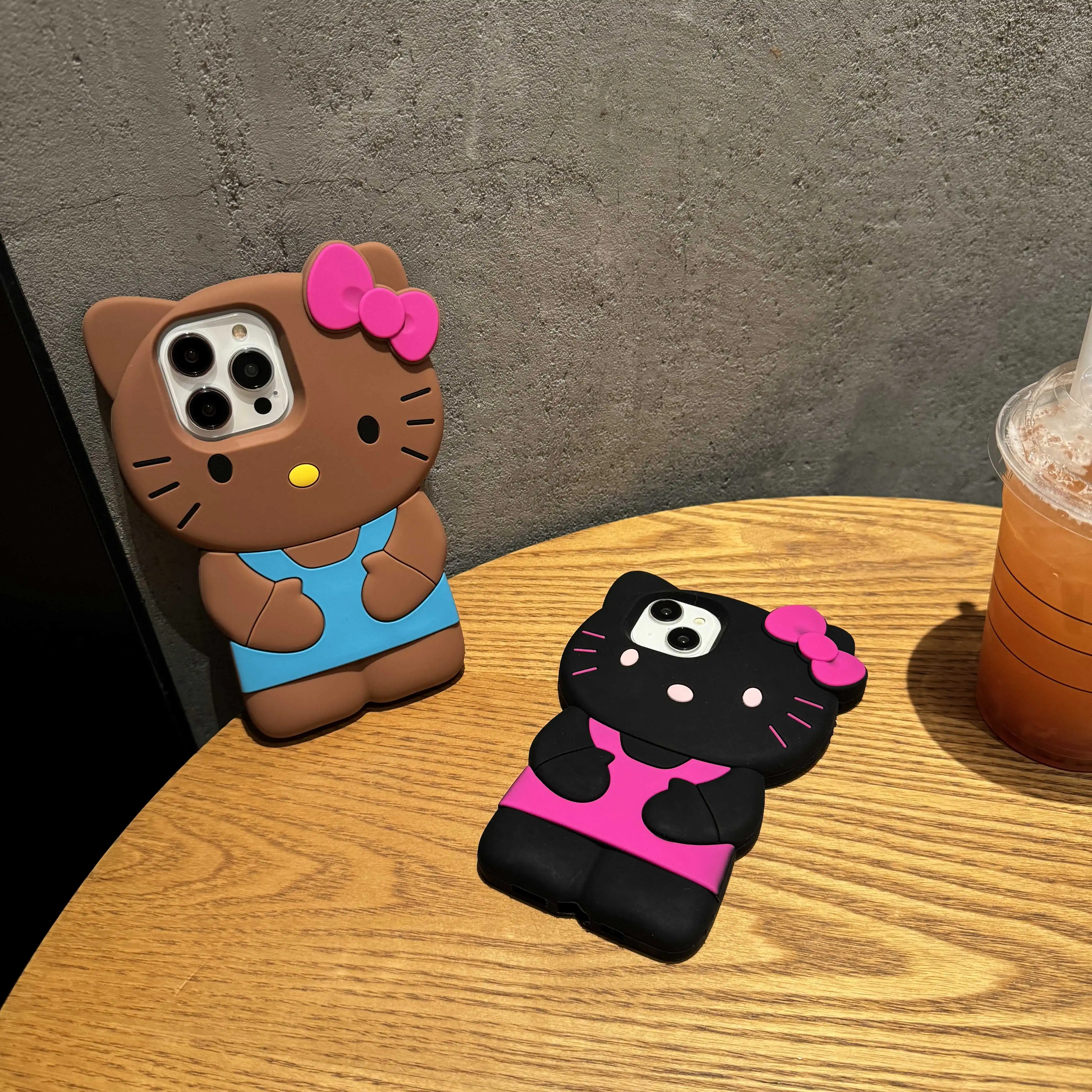 Pro iPhone 15 14 Plus 16 13 Pro Max 12 Mini 11 X XS Max XR 7 8 SE Barevný silikonový kryt s mašlí a kresleným motivem Hello Kitty z měkkého silikonového krytu - Novinky