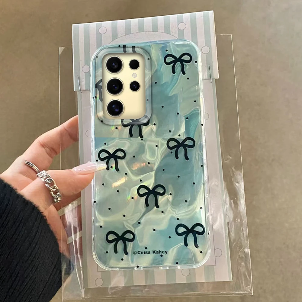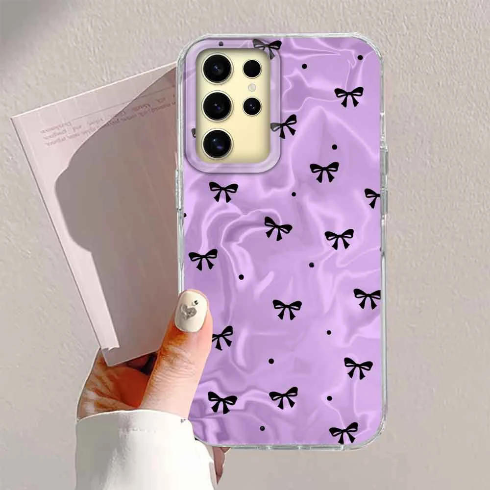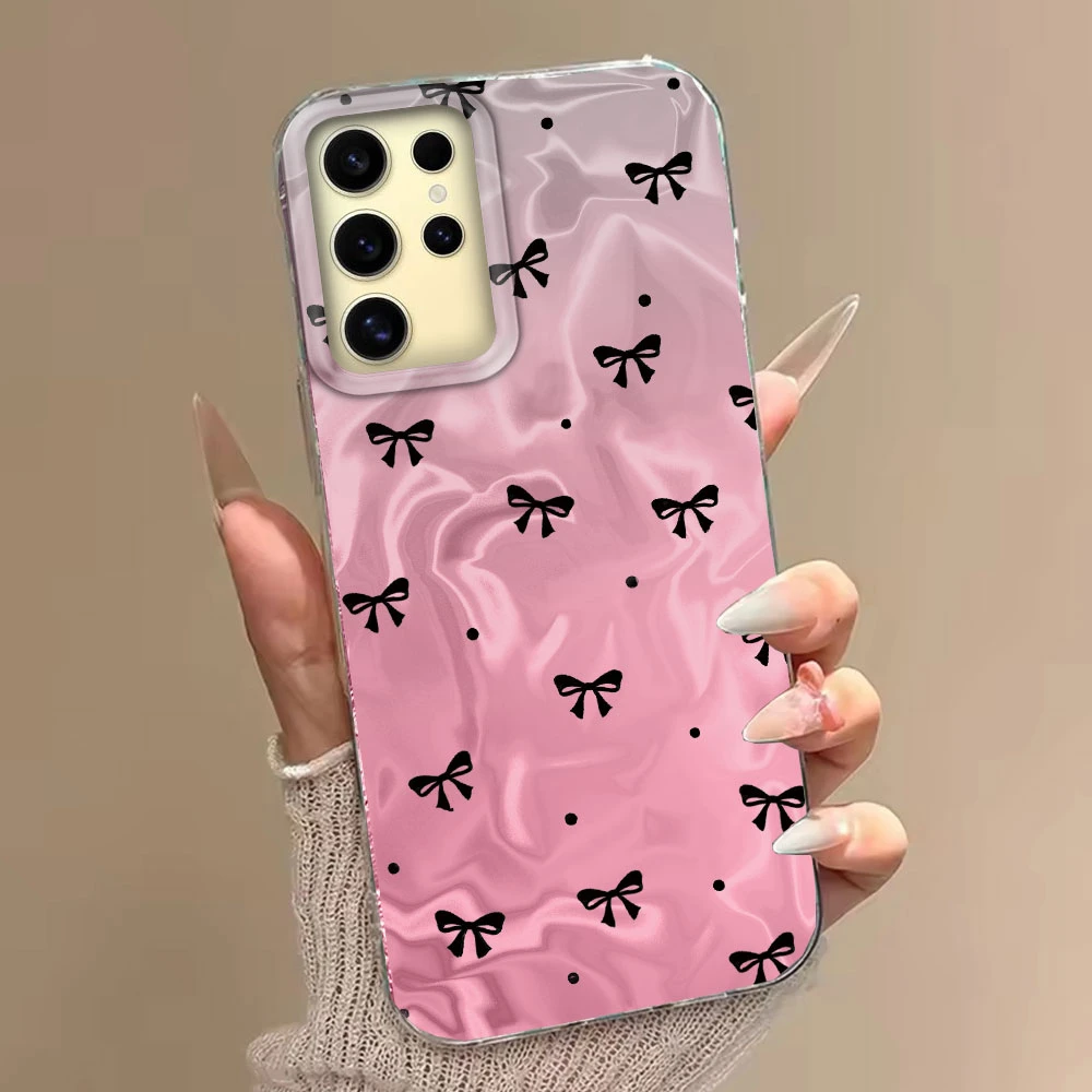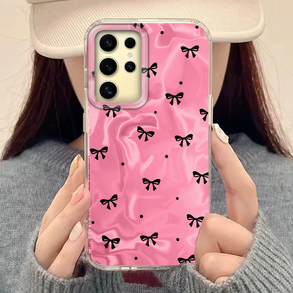 Pro Samsung S22 S25 S24 S23 S21 S20 FE Plus Ultra S25+ S24+ Pouzdro na telefon s černou mašlí a kruhovými tečkami pro ženy, nárazuvzdorné pouzdro - Novinky