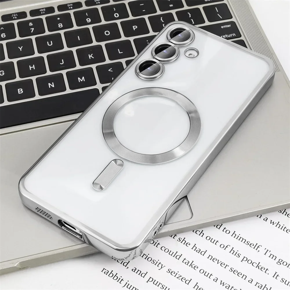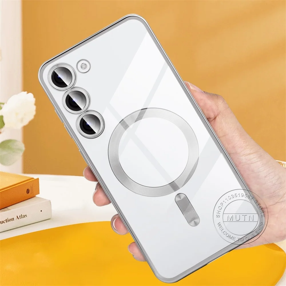 Průhledný bezdrátový kryt pro Samsung Galaxy S25 S24 S23 S22 S21 S20 FE Ultra Plus Pouzdro Note20 Ultra S24FE MagSafe Magnetické