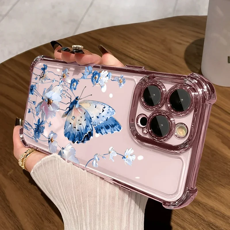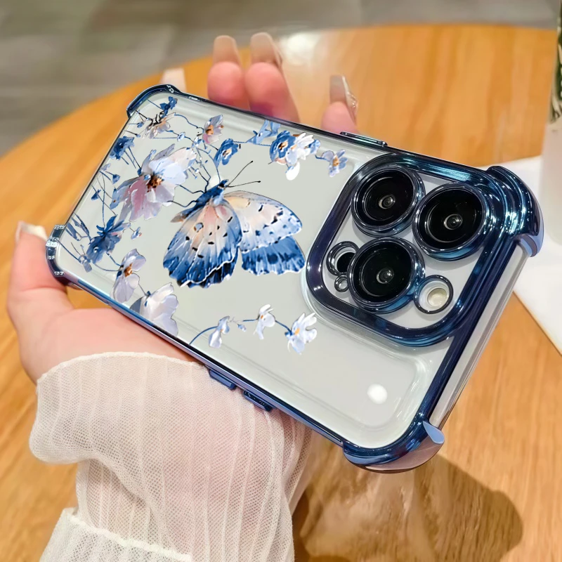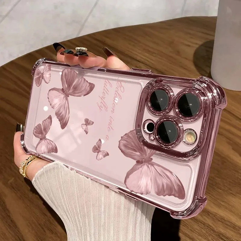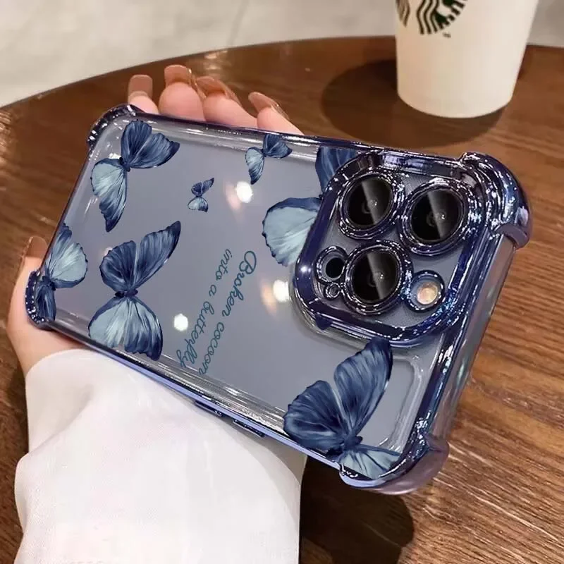 Průhledný kryt s motýlím pokovením pro Samsung Galaxy S25 S24 Ultra Edge S23 FE A56 A16 A15 A25 A55 A35 A36 A26 A54 A14 A34 A24 A06 - Novinky