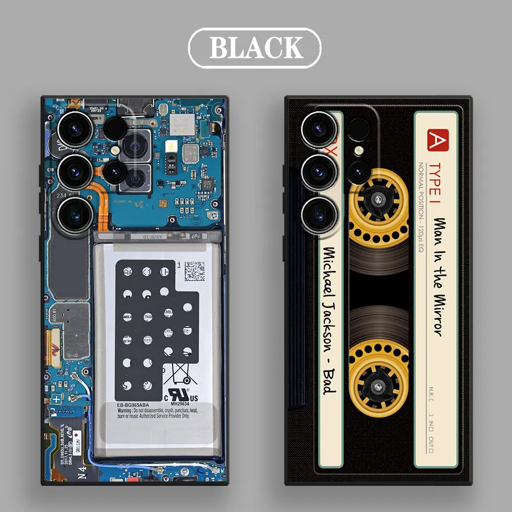 Retro hudební pásky s fotoaparátem a deskou s plošnými spoji pro Samsung Galaxy S25 S23 S21 Ultra S24 FE S22 S20 Plus A36 A56 A55 5G kryt
