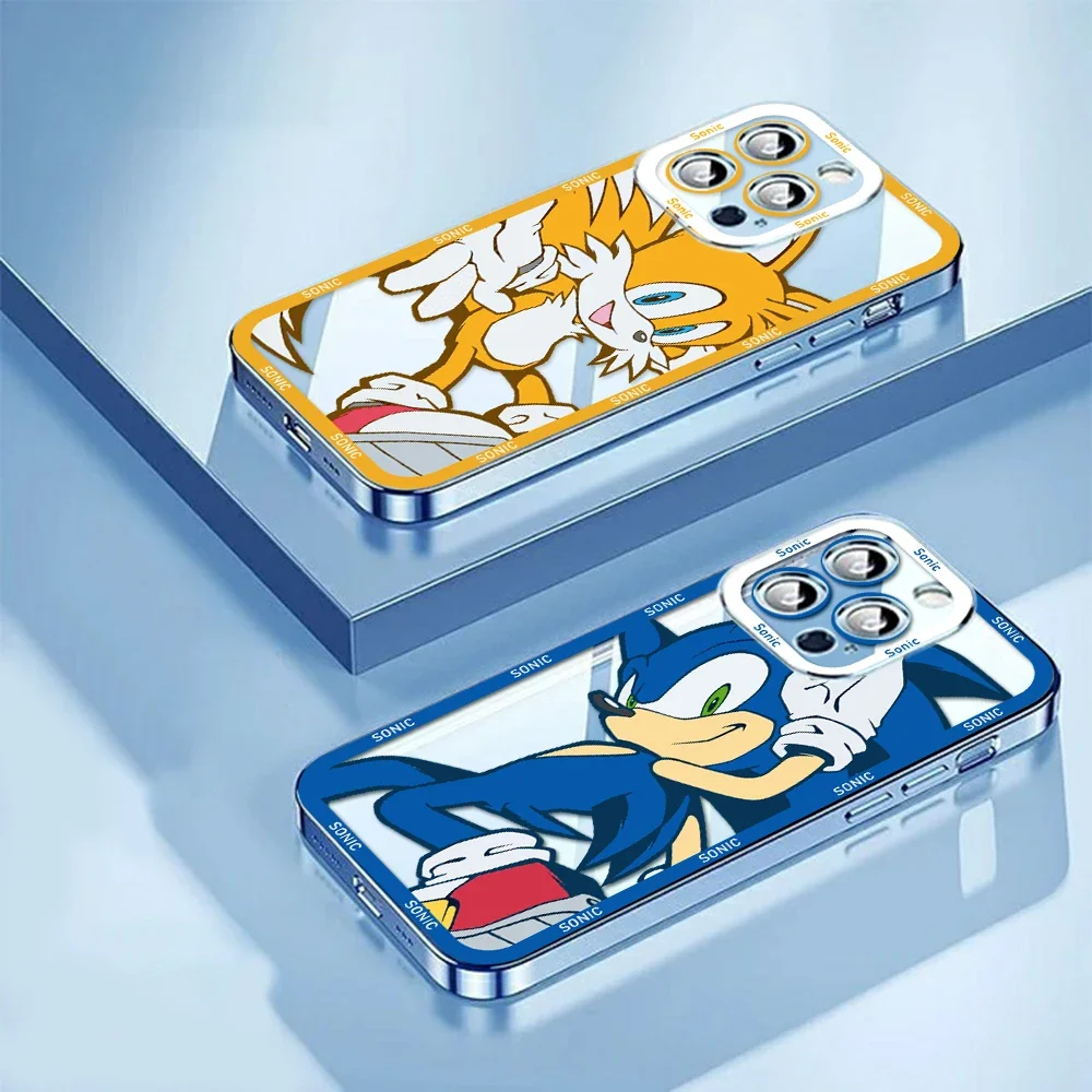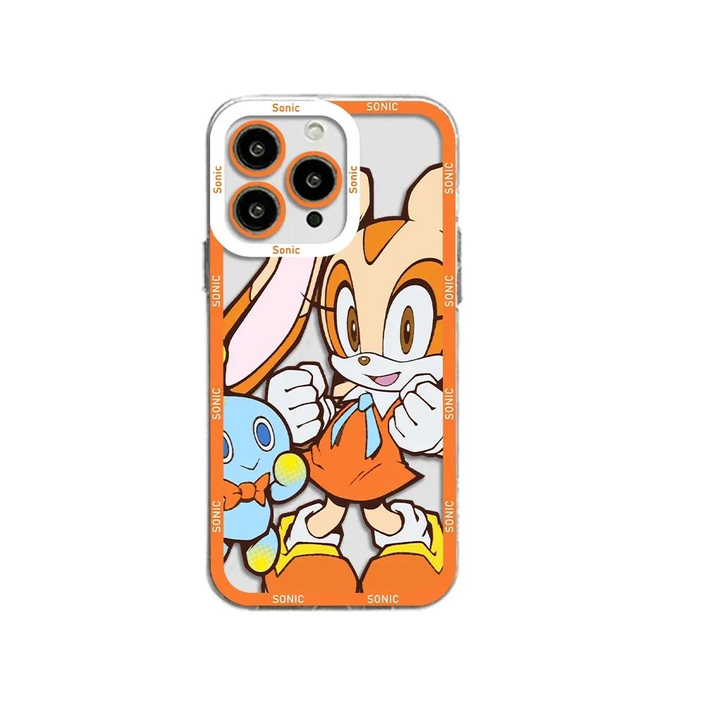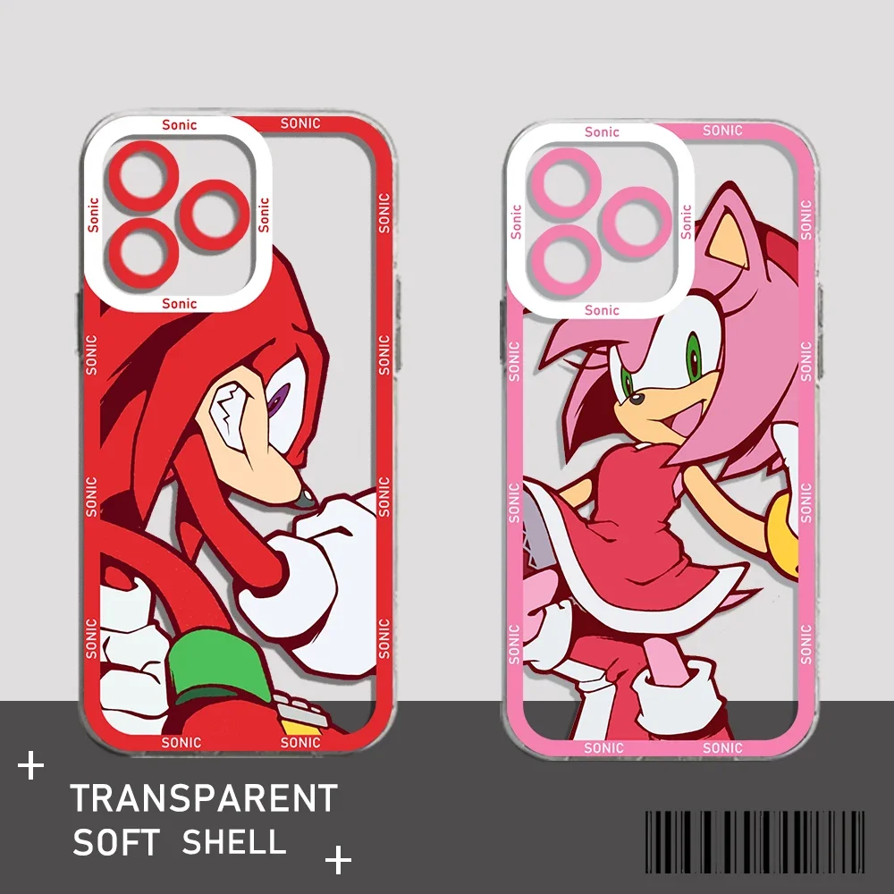 Roztomilý kreslený herní telefon pouzdro pro-SSonics-iPhone 16 15 14 13 12 11 Mini Pro Max X XR XSMax 7 8 Plus SE20 průhledný kryt