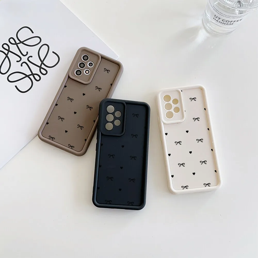 Roztomilý růžový černý kryt s mašlí pro Samsung Galaxy A15 A16 A55 A54 A34 A35 A14 A06 A05 A05S A25 A23 A24 A51 A71 A50 A52 A33 5G A32 Capa - Novinky