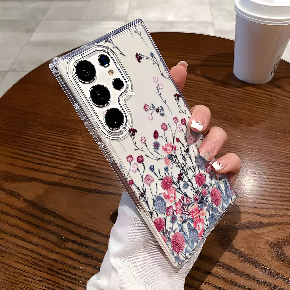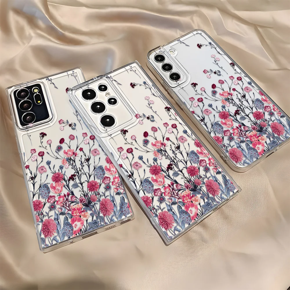 Silikonový kryt s motivem květiny pro Samsung Galaxy S25 Ultra, odolný proti nárazům, pro Samsung S24 Plus, S23 S22 S2S S20 FE. - Novinky