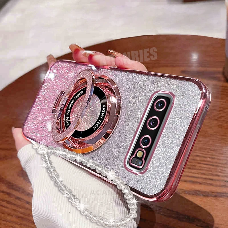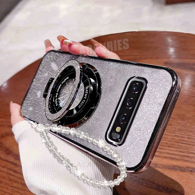 Silikonový kryt s třpytivým řetízkem a držákem pro Samsung Galaxy S10 Plus S10plus S9 S9plus S8 S20 Note 8 9 10 20 Note 9