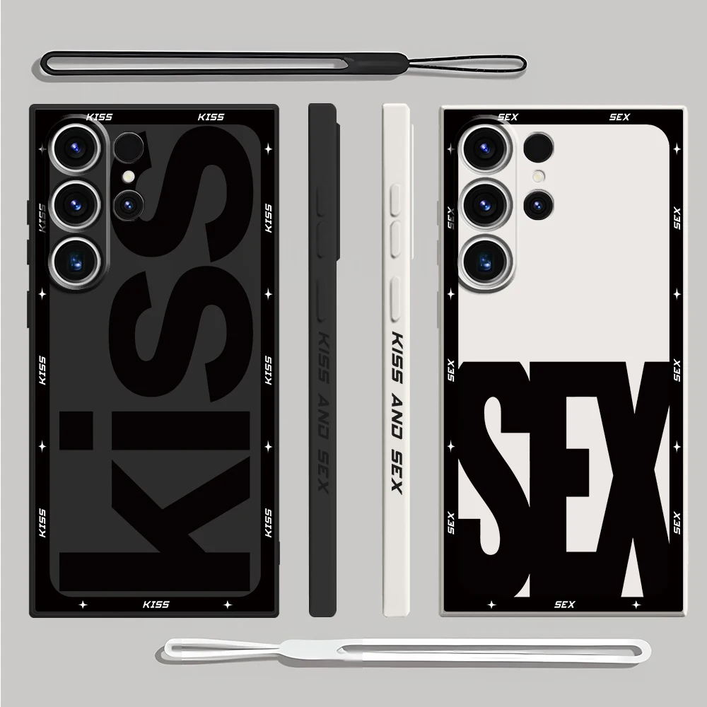 Silikonový měkký zadní kryt s anglickými písmeny, polibek a sex pro Samsung Galaxy S21 Plus S23 Ultra 5G S24 Ultra S22 S20 FE
