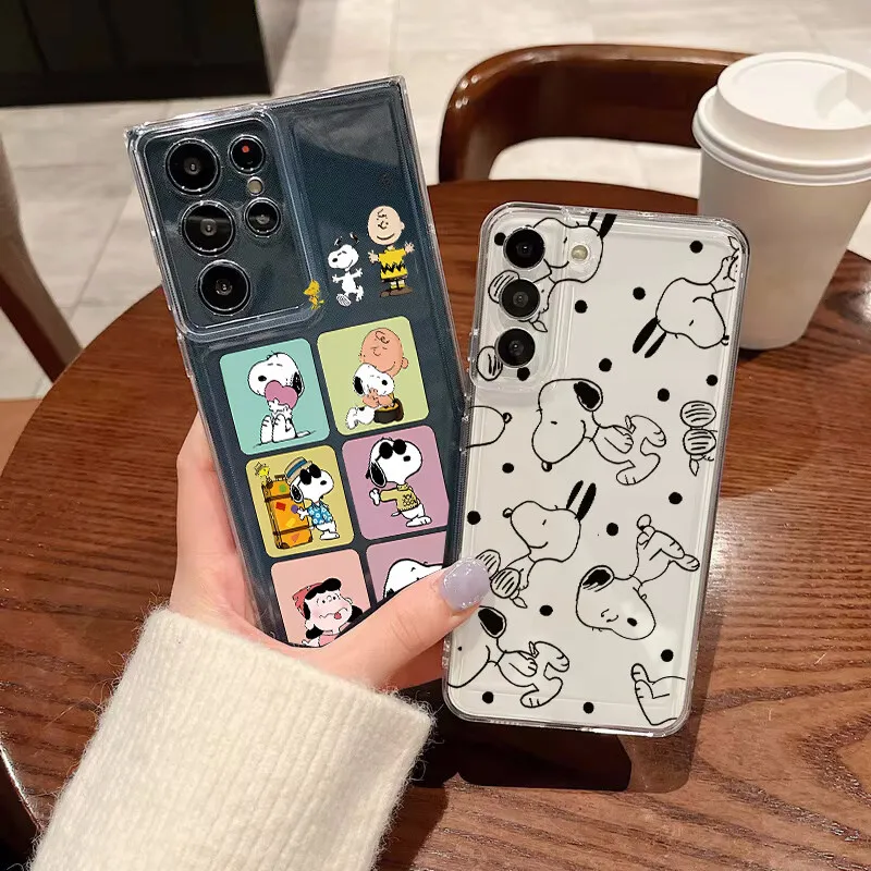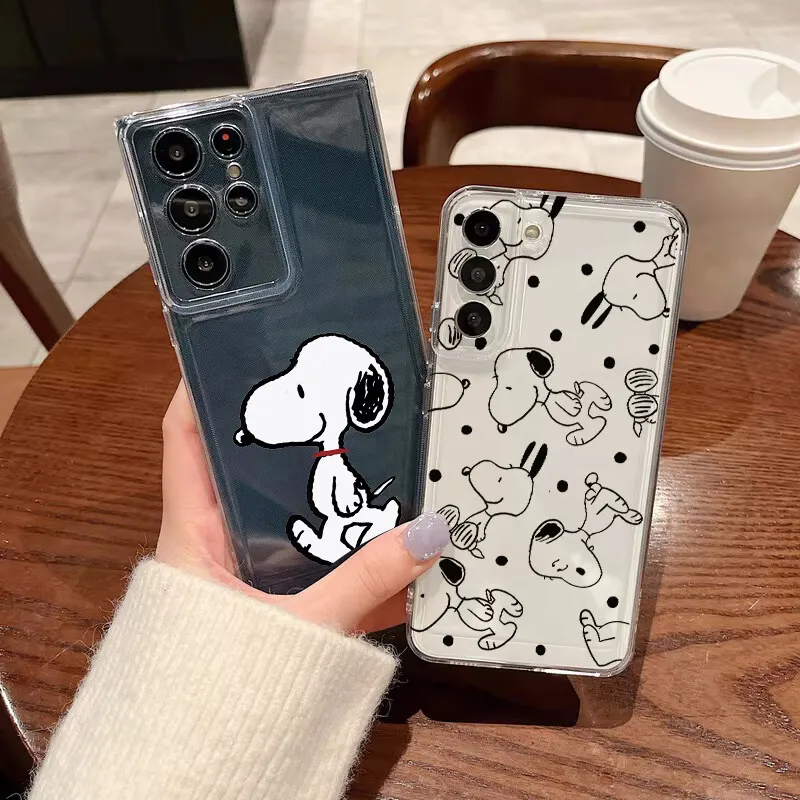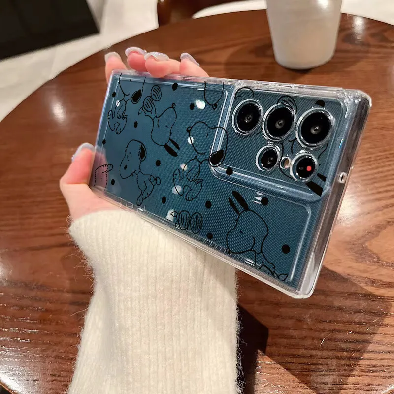 Trendy černý roztomilý kryt se Snoopy pro Samsung Galaxy A56 5G A36 A26 A16 A55 S25 S24 Plus Ultra S24FE Průhledný silikonový kryt na telefon - Novinky