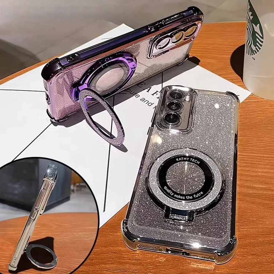 Třpytivý držák na kryt pro Samsung Galaxy S25 Ultra S24 S23 FE S23 Plus Note 20 Ultra magnetický stojánek průhledný gradientní měkký kryt - Novinky