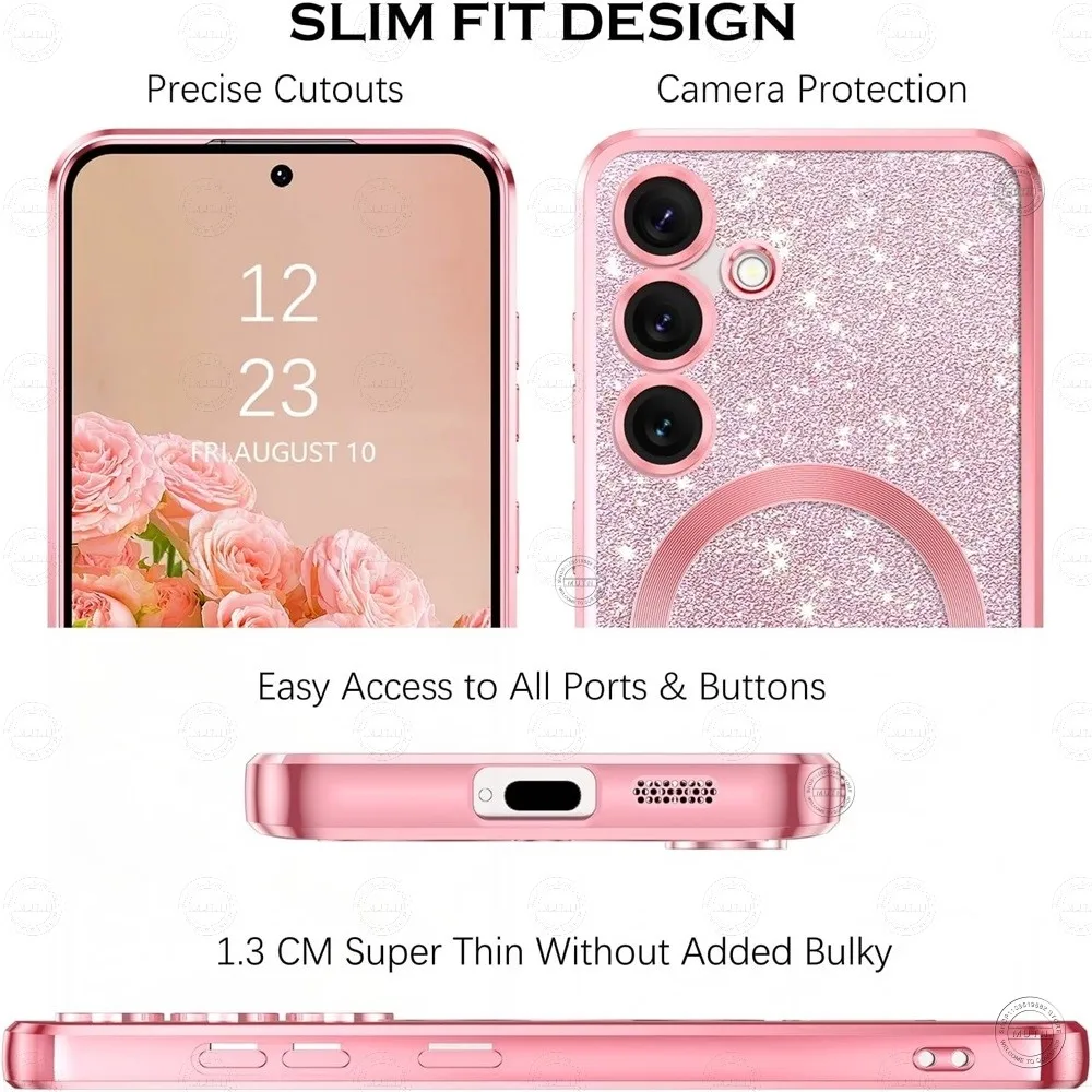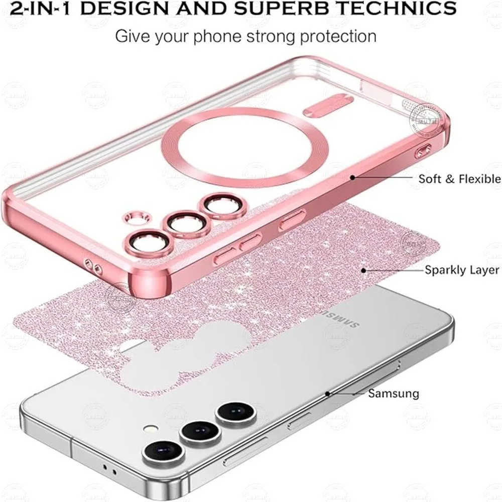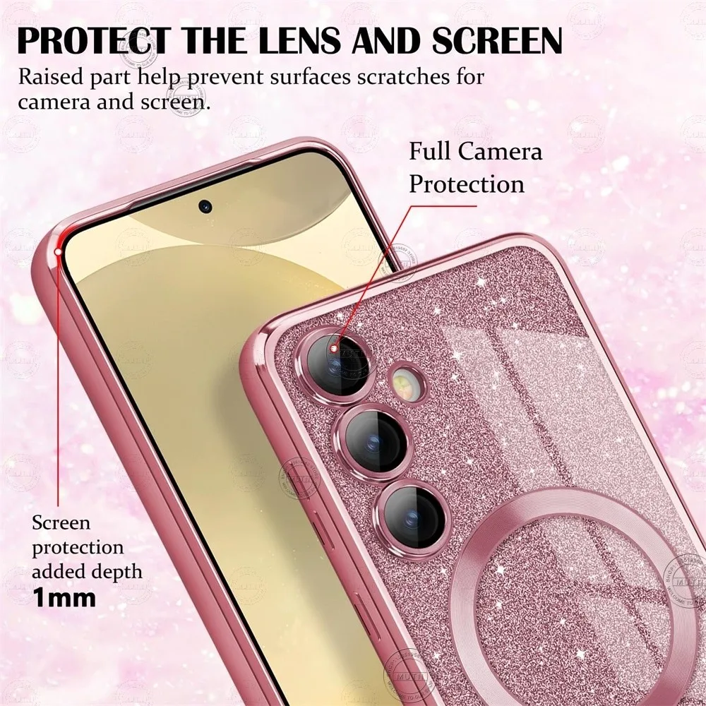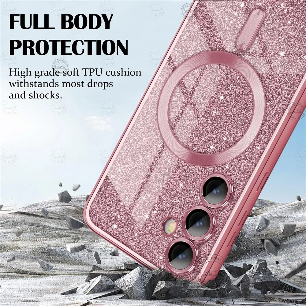 Třpytivý kryt pro Samsung Galaxy S25 S24 S23 S22 S21 S20 Plus FE Note20 Ultra Bright Case Wireless Magnetic MagSafe Lady