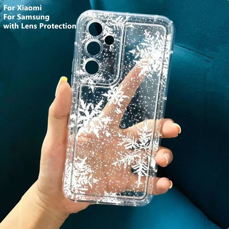 Zimní sněhová vločka pouzdro na telefon pro Samsung Galaxy S24 S23 S22 Ultra Plus S21 S20 FE 5G A55 A35 A15 A54 A53 ochranný kryt proti nárazům